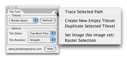 • 'Refresh Tilesets' looks for Tilesets in your document and adds them to the Tileset pulldown menu. (Refreshing happens automatically most of the time)