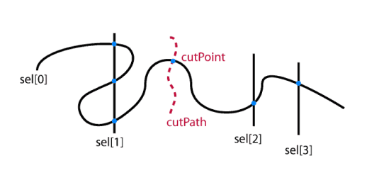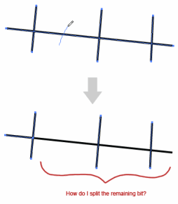 This is the functionality I'd like to create with Scriptographer: I select all relevant paths and draw a line through the part I wish to have removed.