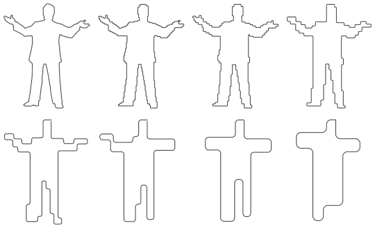 Square Rounded draws with only horizontal and vertical lines and adds a radius to the corners. The size of the steps and the radius can be adjusted.