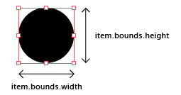 For example if want to know the width and height of an item, we can query the item.bounds property for width and height: