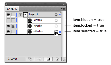 Before we start, let's define what we mean when we talk about items. An item is anything that appears in your document: layers, paths, groups, text items, images etc.