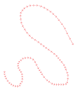 Next we will change our earlier script to express the speed of the mouse while drawing by drawing a skeleton around our path. The skeleton lines become larger when the mouse moves faster and smaller when the mouse moves slowly: