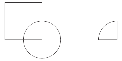 var square = new Path.Rectangle([0, 0], [50, 50]); var circle = new Path.Circle(square.bounds.bottomRight, 25); // Ihe intersection of the paths: var intersection = square.intersect(circle); // Move the resulting path 100pt to the right: intersection.position += [100, 0];