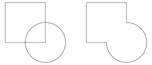 var square = new Path.Rectangle([0, 0], [50, 50]); var circle = new Path.Circle(square.bounds.bottomRight, 25); // Ihe union of the paths: var union = square.unite(circle); // Move the resulting path 100pt to the right: union.position += [100, 0];
