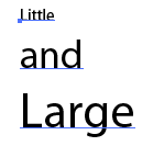 var position = new Point(100, 100); var textItem = new PointText(position); textItem.content = 'LittlerandrLarge'; var littleRange = textItem.range.words[0]; littleRange.characterStyle.fontSize = 5; var largeRange = textItem.range.words[2]; largeRange.characterStyle.fontSize = 15;