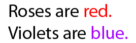 var position = new Point(100, 100); var textItem = new PointText(position); textItem.content = 'Roses are red.rViolets are blue.'; var redWord = textItem.range.words[2]; redWord.characterStyle.fillColor = '#ff0000'; var blueWord = textItem.range.words[5]; blueWord.characterStyle.fillColor = '#8F00FF';