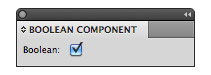 A boolean component is a checkbox that can be checked or unchecked, toggling a boolean value between true and false. It does not offer any additional properties.